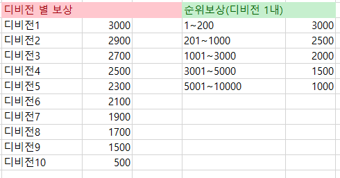 본론입니다. 현재 디비전 보상은 다음과 같습니다.(디비전 메뉴에서 직접 확인해보세요)