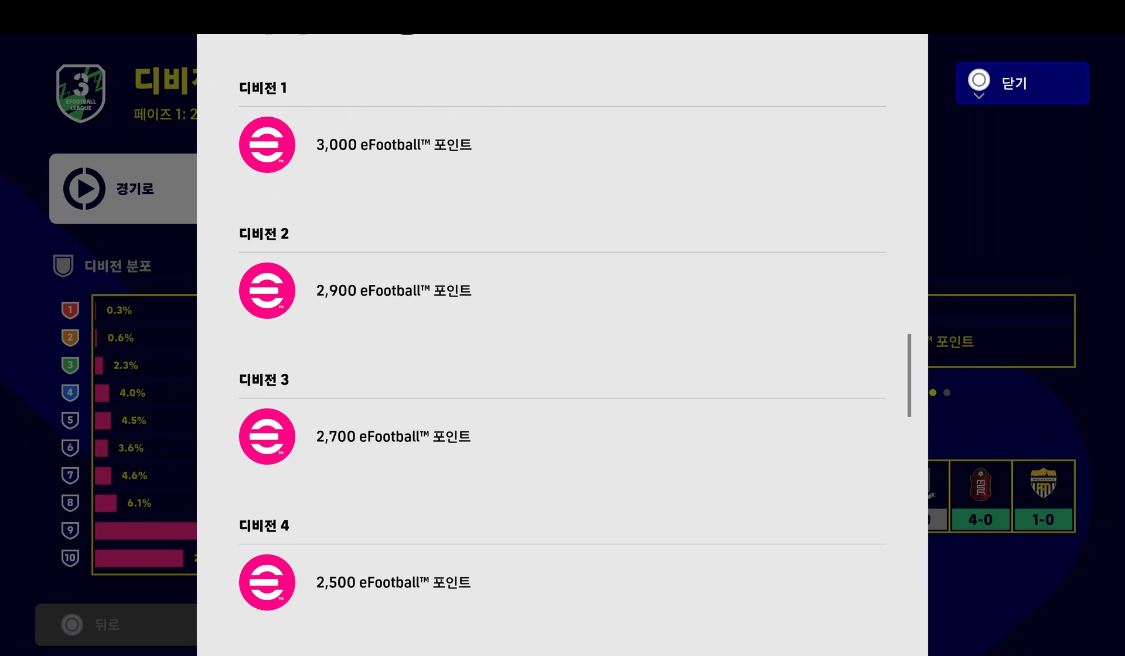 일단 모바일 이풋볼은 누구나 할 수 있습니다. 물론 조작이 힘들겠지만 디비전 10은 AI전 1승만 하면 완료하여 바로 디비전 9로 갈 수 있다는 사실. 그렇게만 하여도 이포인트 1500점 획득입니다.