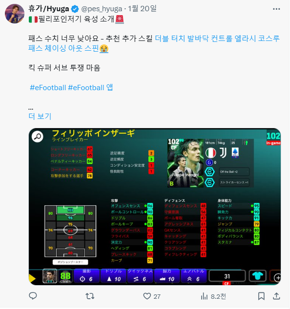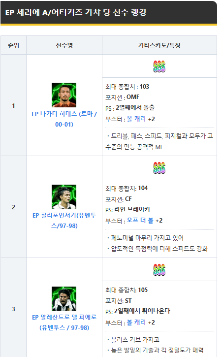 2025.01.16 - [이풋볼 에픽 분석, 랭킹 정리, 추천도 정리 등] - 250116 에픽 카카, 네드베드, 구띠 랭킹 분석, 추천도, 선수 분석입니다.