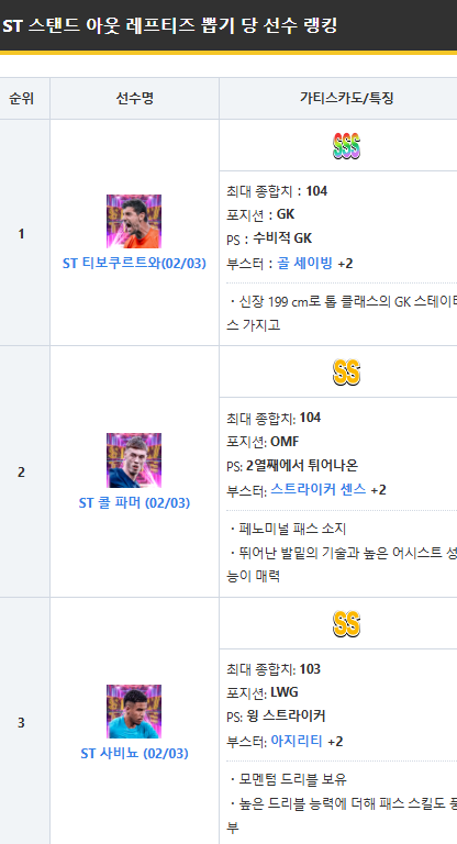 | s쿠르투아 | GK | 수gk | 기본 스탯 바로가기 | |