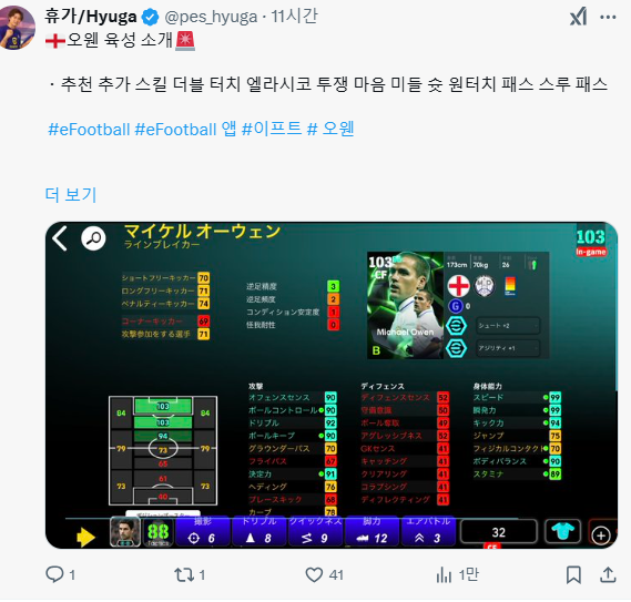 cf 라브는 다른 포지션과 플스에 비해 많이 나옵니다. 그리고 올인 피니싱이 흔해지고 있는 상황입니다. 밑에 추천 스탯을 보면 알겠지만 오언은 키작고 빠르며 슈조 올피. 기존 오언들과 비교하면 더블 부스터 처음으로 나왔고 가장 좋을 듯 합니다. 그리고 양발이 좋네요. 정확도는 매우 높음입니다. 양발이 되는 라브로 치면 최상급이겠네요.