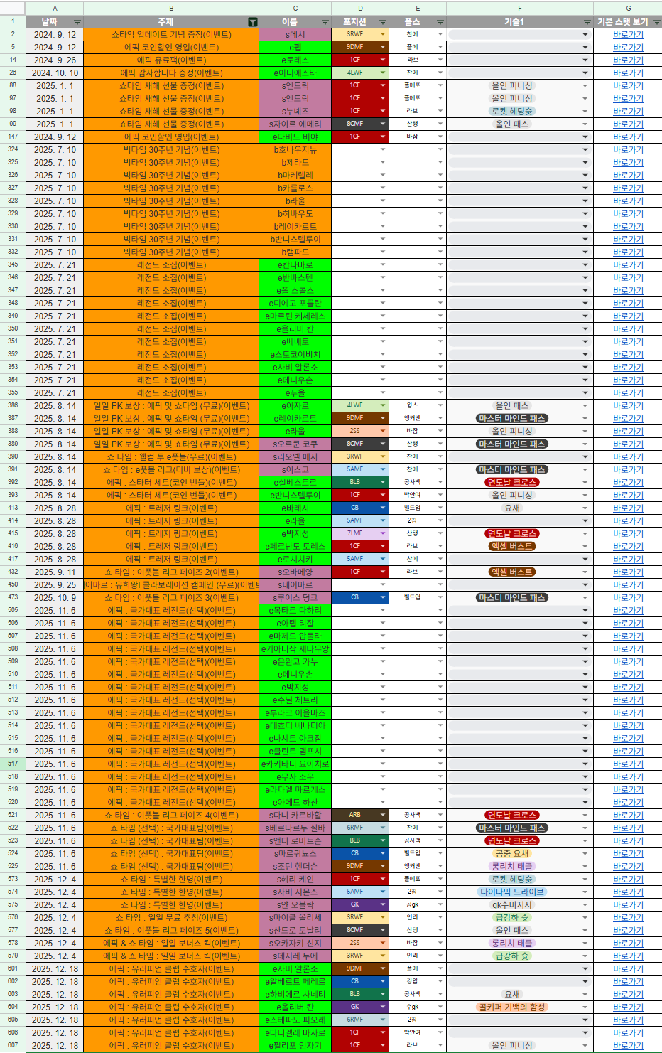 | 2025. 12. 4 | 쇼 타임 : 특별한 한명(이벤트) | s얀 오블락 | GK | 공gk | gk수비지시 | 바로가기 |