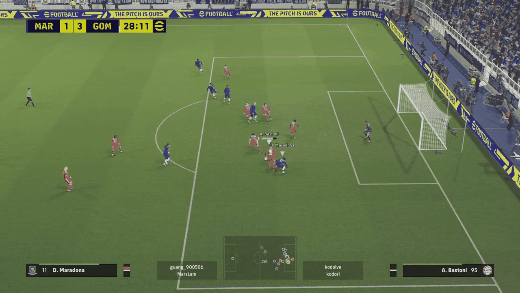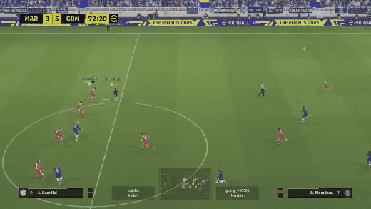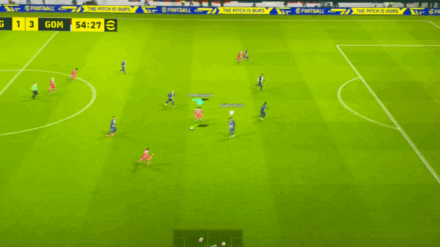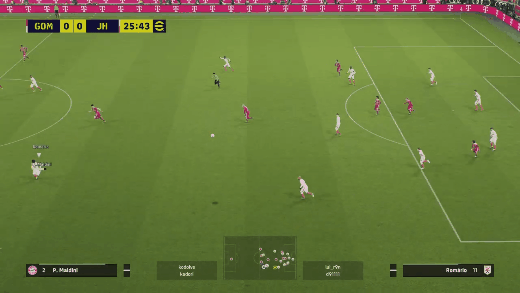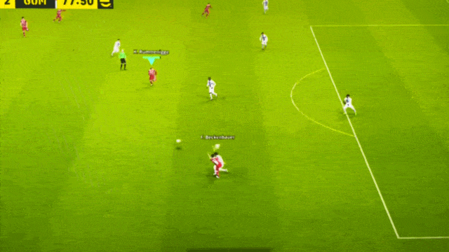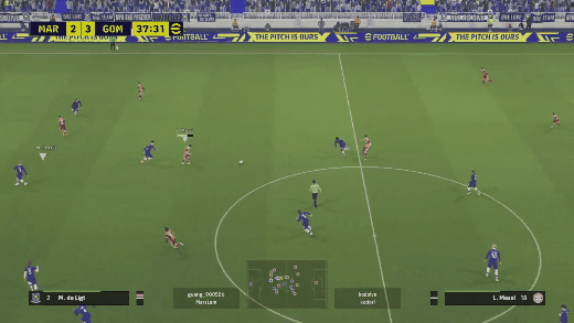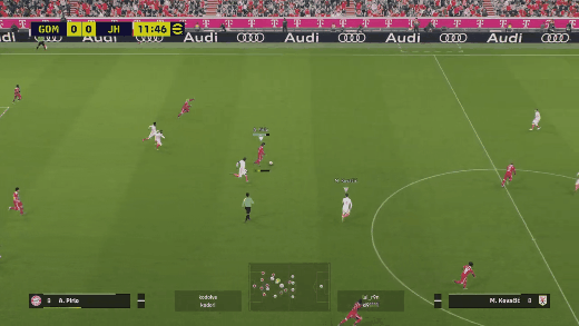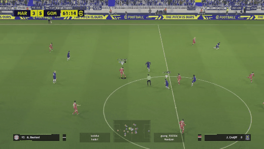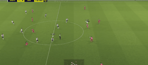 ▶빌드업시, 한번에 방향전환 하는 네드베드. 상대방은 네드베드가 가는 방향을 신경쓴다고 커서도 밑의 수비로 잡은 모습을 볼 수 있음(잠깐이지만)