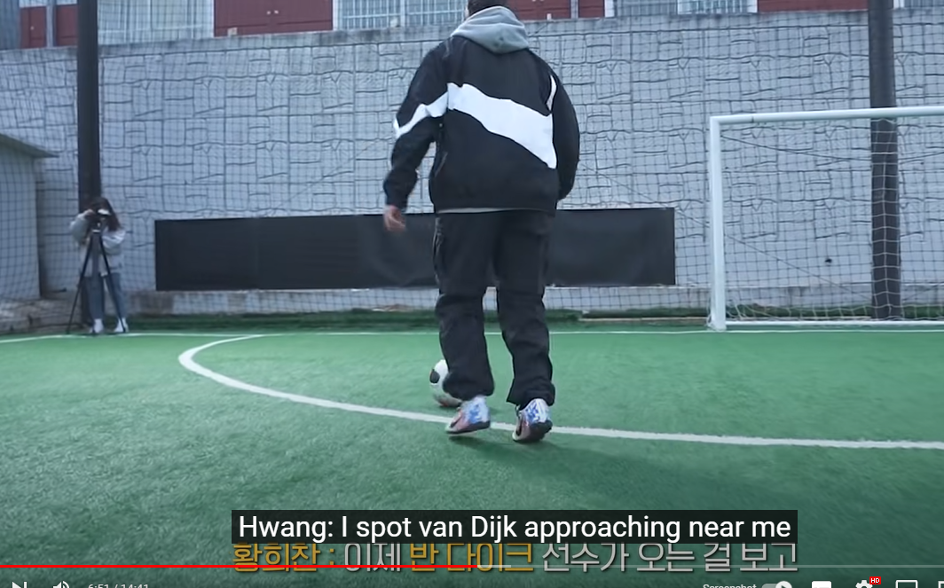 황희찬 선수가 반다이크를 제치고 골을 넣은 동작이랑 닮았죠.