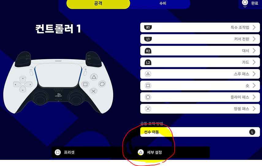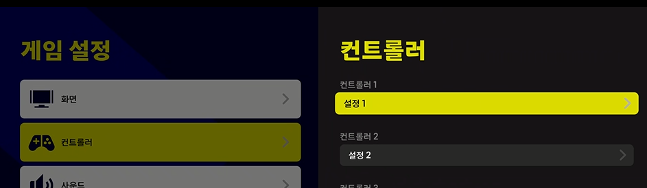 게임설정 - 컨트롤러에 들어갑니다. 설정 1로 들어가면 됩니다.