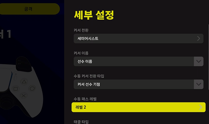 위닝 때부터 있었던 패스 레벨. 초보분들은 아예 개념을 모를 수도 있는데요, 전작 위닝 2021에서는 패스레벨을 1, 2, 3으로 3개, 이번작 이풋볼에서는 총 4개로 구분하였습니다. 설정방법과 간단한 설명을 하겠습니다.