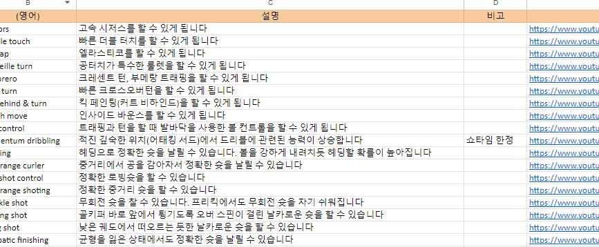 이풋볼 재계약 & 기술 추가 대상 선수 정리를 돕는 엑셀 사용법 및 다운로드