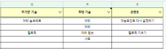 - 선수별로 어떤 기술을 추가 하고 싶은지