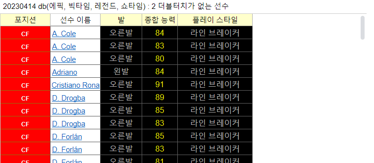 | 특정 기술 없는 선수 데이터 베이스(2023.4.14.)(레전더리, 에픽, 빅타임, 쇼타임) (1) | 2023.04.15 |